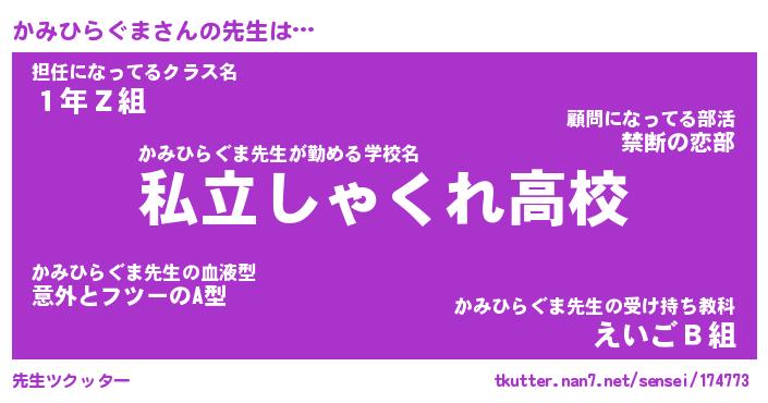 | 意味不明あだ名 | 『ペロリンかみひらぐま』 |
