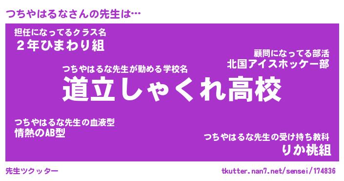 | ヒーロー風カッコイイあだ名 | 『スーパーツチヤハルナ』『幻影騎士ツチ』 |