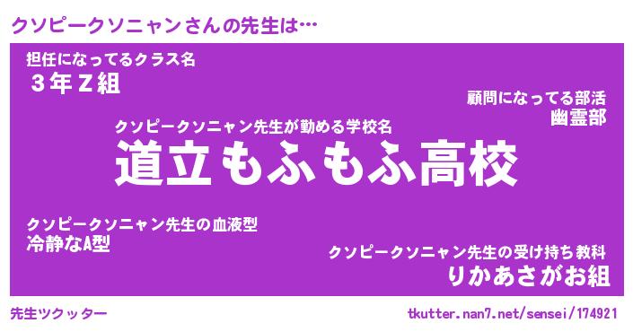 | 意味不明あだ名 | 『ペロリンクソピークソニャン』 |