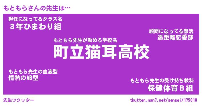 | 意味不明あだ名 | 『ペロリンもともら』『永久保存もともら』 |