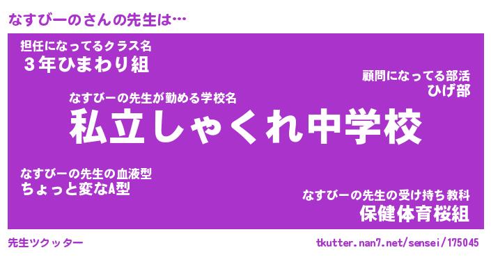 | 伝説のあだ名 | 『伝説のスナイパーなすびーの』 |