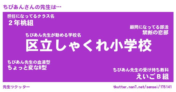 | 意味不明あだ名 | 『ペロリンちびあん』『永久保存ちびあん』 |