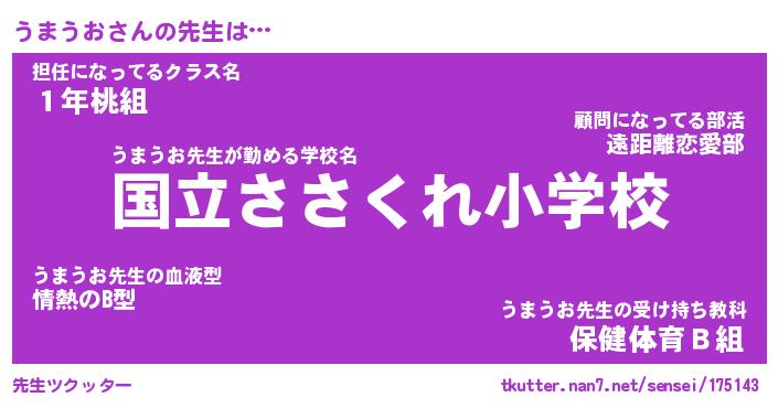| 意味不明あだ名 | 『ペロリンうまうお』『永久保存うまうお』 |