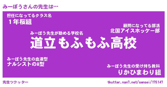 | ヘコむあだ名 | 『みーにゅー』『つくし』『みーっ子』 |