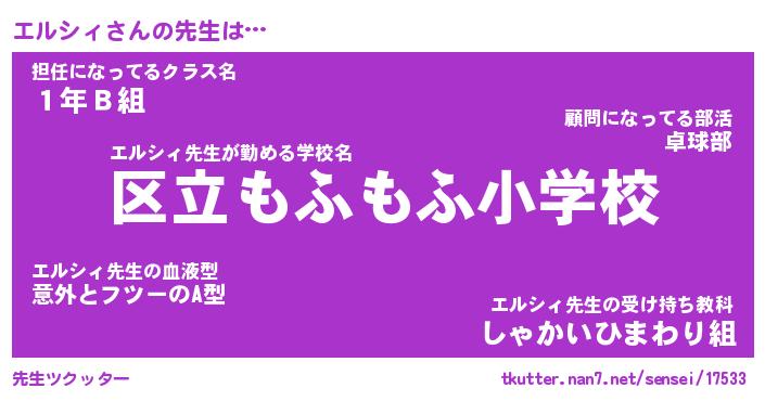 | 肩書あだ名 | 『エルシィ店長』『エルシィ総理大臣』 |
