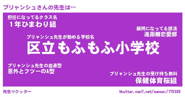 | 恥ずかしいあだ名 | 『プリティープリャンシュ』『プリっちょ』 |