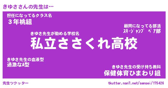 | 伝説のあだ名 | 『伝説のスナイパーきゆさ』 |