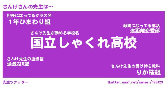 | 意味不明あだ名 | 『ペロリンさんけ』『さんけフォーエバー』 |