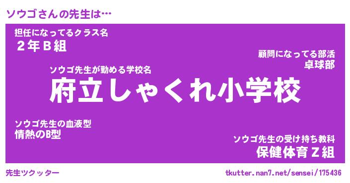 | ポケモン風あだ名 | 『ソウチュウ』『ソウゴダネ』 |