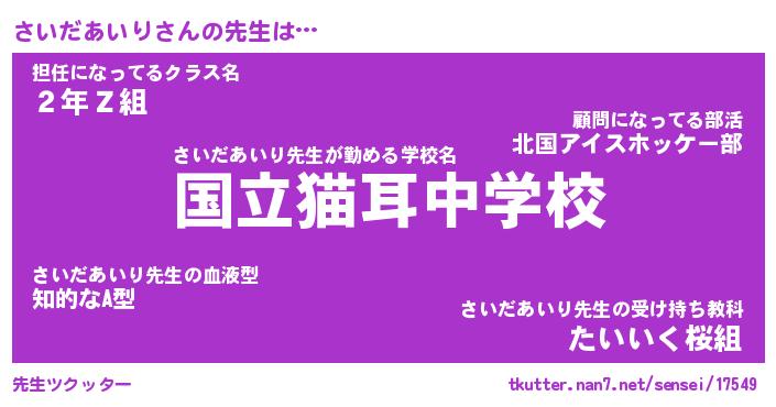 | ヘコむあだ名 | 『さいにー』『豆乳』『さいお』 |
