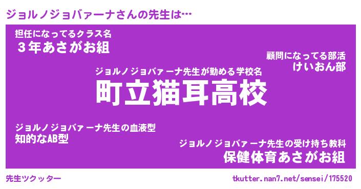 | 女子向けラノベタイトル風あだ名 | 『誰かこのジョルノジョバァーナを説明してください! ~契約から始まるウェディング~』 |