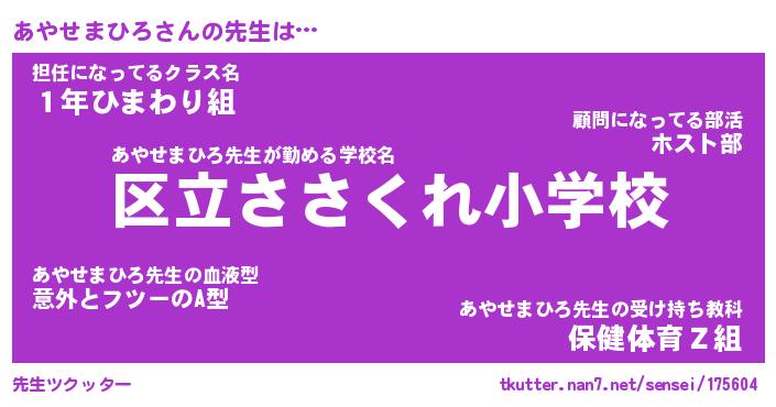 | ヒーロー風カッコイイあだ名 | 『スーパーアヤセマヒロ』『魔戒騎士アヤ』 |