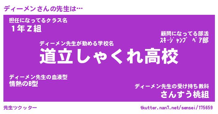 | 肩書あだ名 | 『ディーメン御曹司』『ディーメン校長』 |