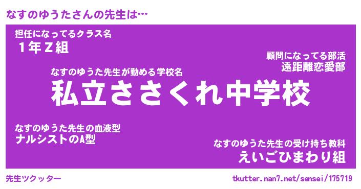 | ヒーロー風カッコイイあだ名 | 『スーパーナスノユウタ』『銀牙騎士ナス』 |