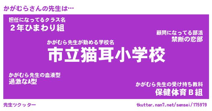 | 意味不明あだ名 | 『ペロリンかがむら』『永久保存かがむら』 |