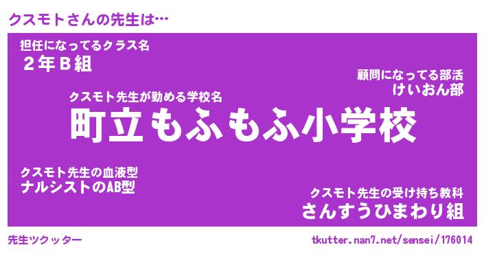 | 意味不明あだ名 | 『ペロリンクスモト』『永久保存クスモト』 |