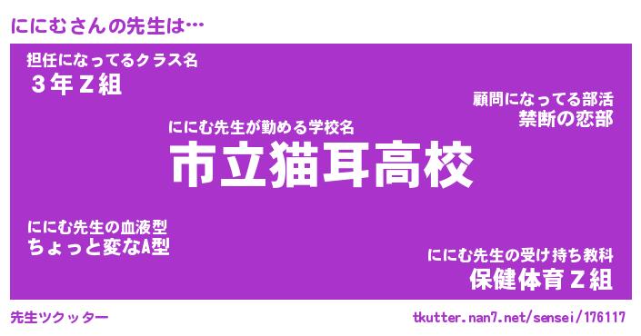 | 意味不明あだ名 | 『ペロリンににむ』『ににむフォーエバー』 |