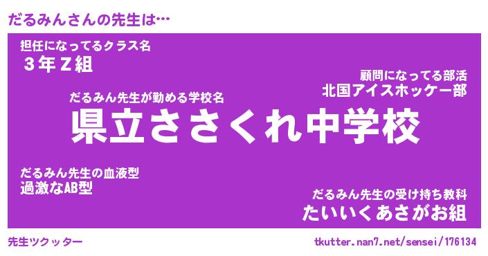 | 意味不明あだ名 | 『ペロリンだるみん』『永久保存だるみん』 |