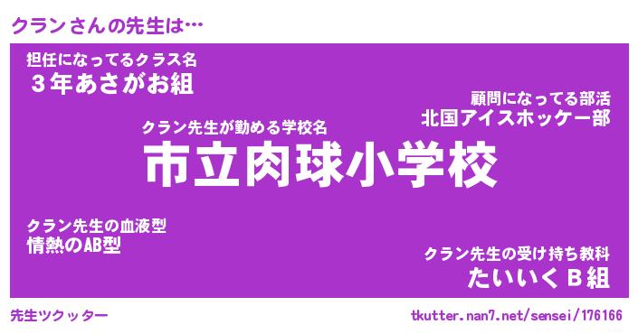| 意味不明あだ名 | 『ペロリンクラン』『クランフォーエバー』 |