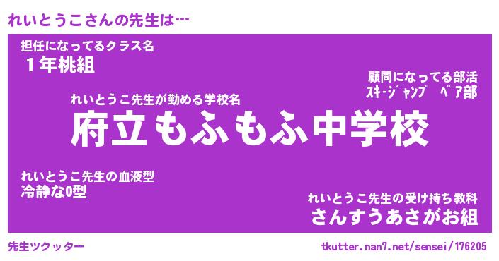 | ヘコむあだ名 | 『れいにゅー』『つくし』『れいっ子』 |