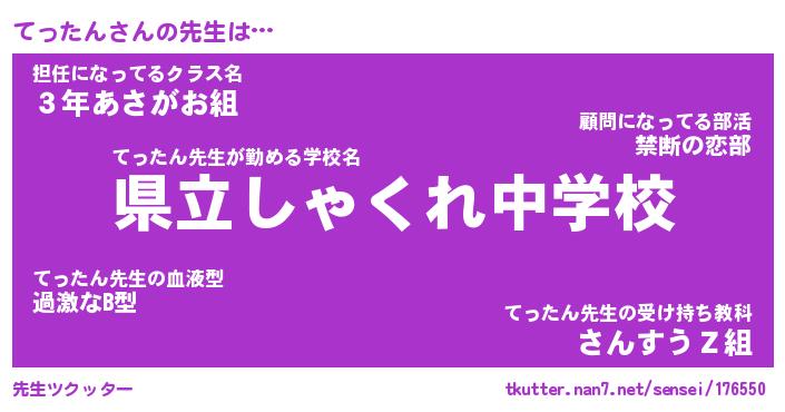 | 意味不明あだ名 | 『ペロリンてったん』『永久保存てったん』 |