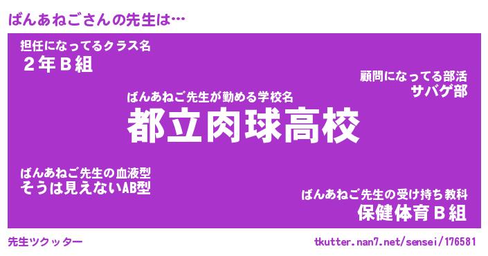 | ヘコむあだ名 | 『ばんふぇ~』『豆乳』『ばん太郎』 |