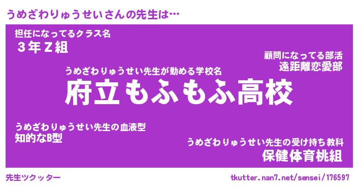 | ポケモン風あだ名 | 『ウメチュウ』『ウメザダネ』 |