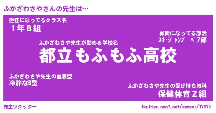 | ヘコむあだ名 | 『ふかにゅー』『つくし』 |