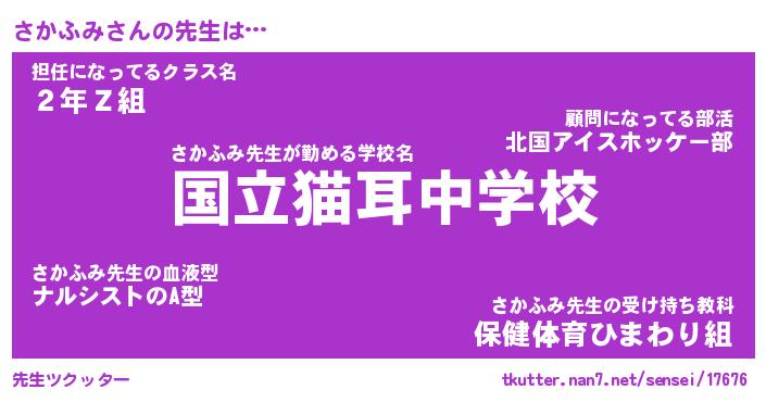 | 男性向けラノベタイトル風あだ名 | 『さかふみの憂鬱』 |