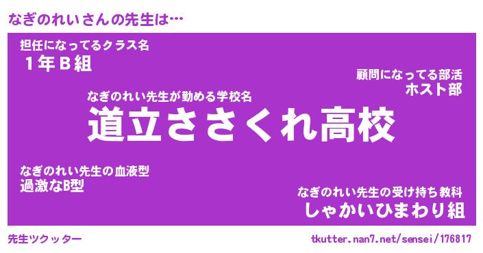 | ヘコむあだ名 | 『なぎもー』『つくし』『なぎ太郎』 |