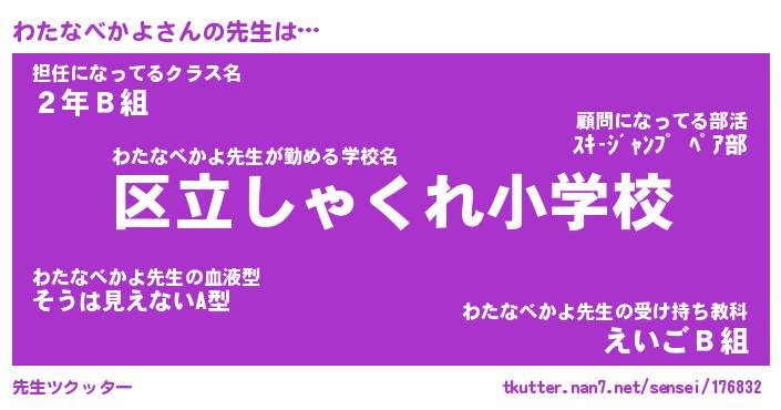 | 伝説のあだ名 | 『封印されしスナイパーわたなべかよ』 |