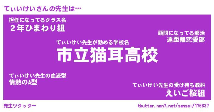 | 男性向けラノベタイトル風あだ名 | 『てぃいけいの憂鬱』 |