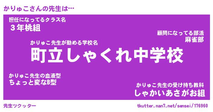 | 意味不明あだ名 | 『ペロリンかりゅこ』『永久保存かりゅこ』 |