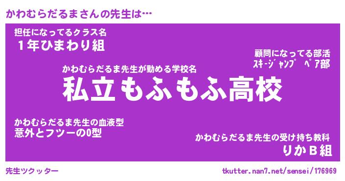| ヘコむあだ名 | 『かわにゅー』『つくし』『かわを』 |