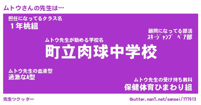 | 意味不明あだ名 | 『ペロリンムトウ』『ムトウフォーエバー』 |