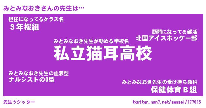 | ヘコむあだ名 | 『みとにー』『なまこ酢』『みとお』 |