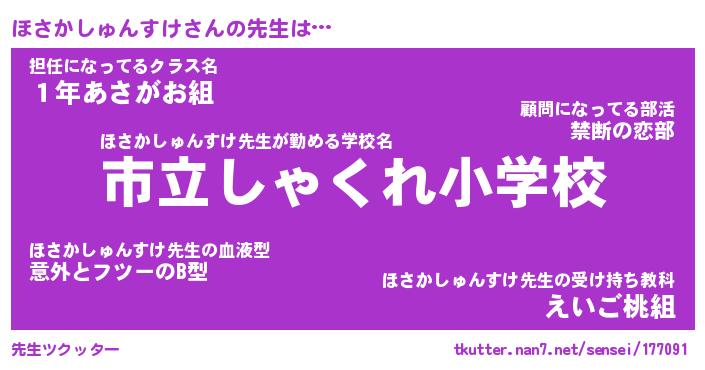 | 伝説のあだ名 | 『伝説のスナイパーほさかしゅんすけ』 |