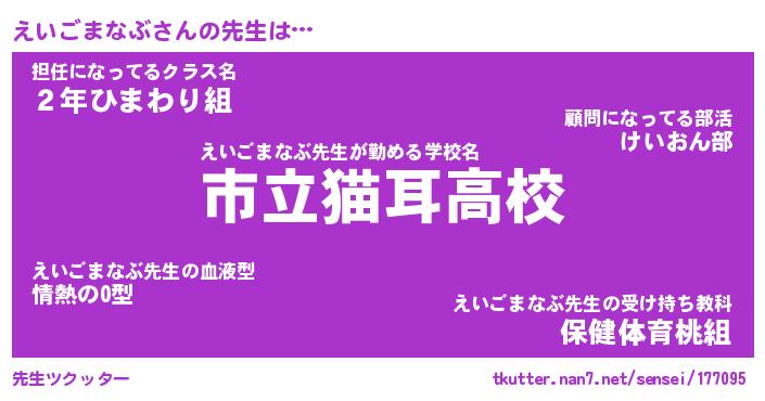 | ポケモン風あだ名 | 『エイチュウ』『エイゴダネ』 |
