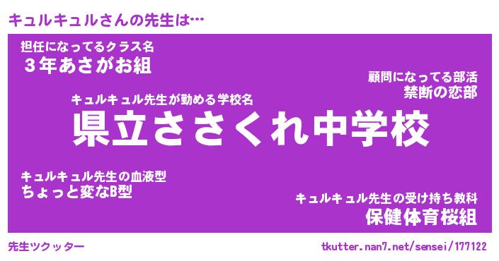 | ヒーロー風カッコイイあだ名 | 『スーパーキュルキュル』『銀牙騎士キュ』 |