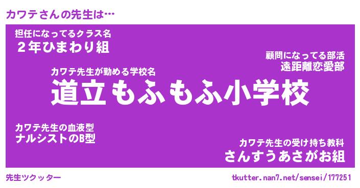 | 意味不明あだ名 | 『ペロリンカワテ』『カワテフォーエバー』 |