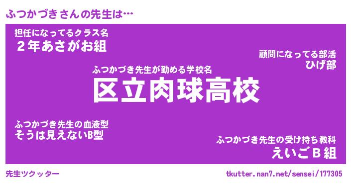 | ファンタジー風あだ名 | 『フツフェル』『エターナルフツカヅキー』 |