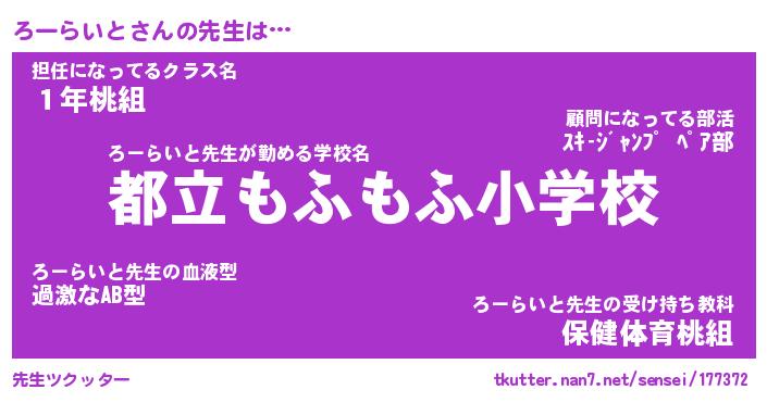 | ヘコむあだ名 | 『ろーにゅー』『つくし』 |