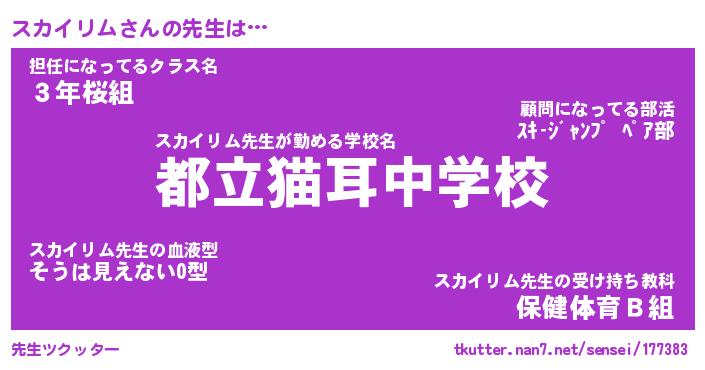 | 恥ずかしいあだ名 | 『プリティースカイリム』『スカっちょ』 |