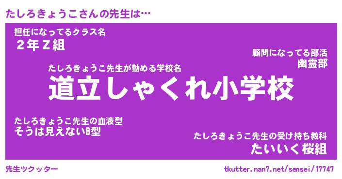 | 伝説のあだ名 | 『不死鳥のスナイパーたしろきょうこ』 |