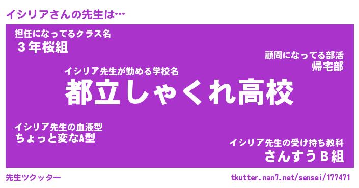 | ファンタジー風あだ名 | 『イシフェル』『エターナルイシリアー』 |
