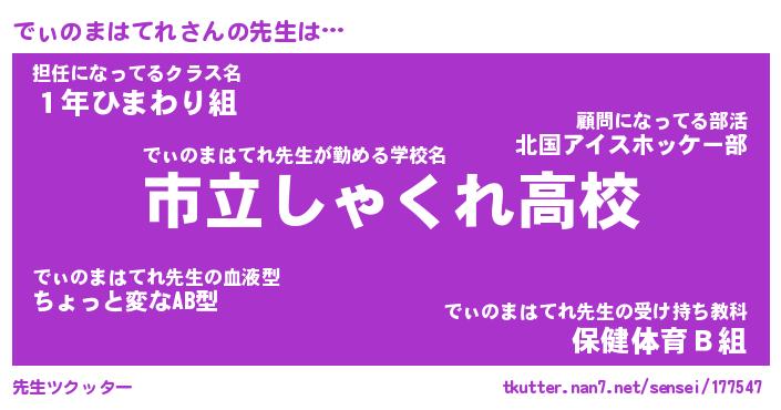 | 伝説のあだ名 | 『伝説のスナイパーでぃのまはてれ』 |