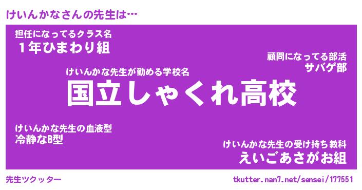 | 伝説のあだ名 | 『伝説のスナイパーけいんかな』 |