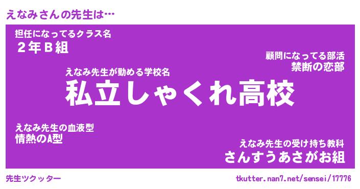 | ファンタジー風あだ名 | 『エナフェル』『エターナルエナミー』 |