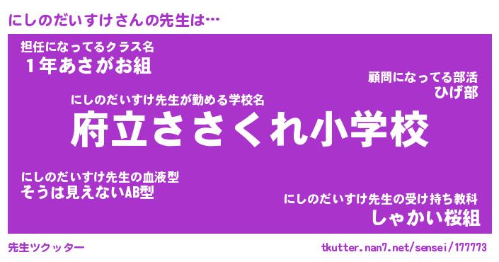 | ポケモン風あだ名 | 『ニシチュウ』『ニシノダネ』 |