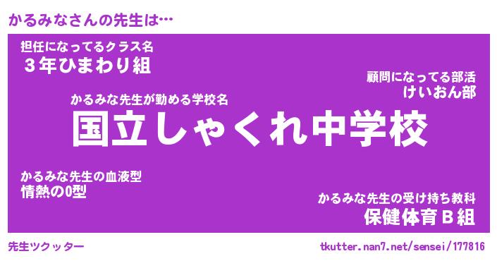 | 伝説のあだ名 | 『伝説のスナイパーかるみな』 |